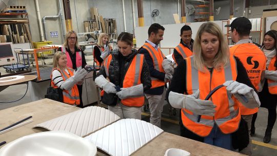 Visitors got to hand form their own Corian™ knots and also got their hands on bowls, basins and signage applications for this wonder material. Thanks to Sylvia and Paul from CASF who helped put the day together, and to John Spatino from Corsa Lighting for the light box.